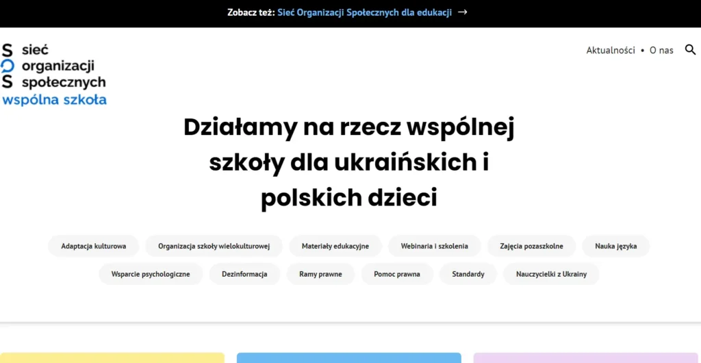 Stworzyliśmy portal www.soswspolnaszkola.pl dla Fundacji Pole Dialogu, który powstał jako reakcja na agresję Rosji na Ukrainę. Od początku wojny w polskich szkołach i przedszkolach pojawiło się ponad 200 tysięcy ukraińskich dzieci, a około pół miliona młodych uchodźców i uchodźczyń uczyło się zdalnie, co stanowiło ogromne wyzwanie organizacyjne. Wspólna Szkoła ma ułatwić działania i przepływ informacji. Tworzy sieć instytucji zajmujących się edukacją oraz wsparciem psychospołecznym ukraińskich i polskich dzieci. Wykorzystane technologie: WordPress.