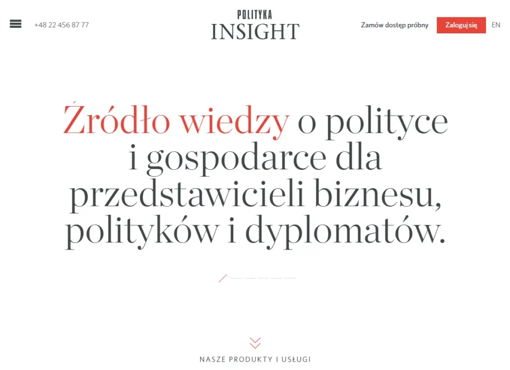 Polityka Insight powstała w 2013 roku i jest centrum analitycznym stworzonym przez Wydawcę Tygodnika Polityka.