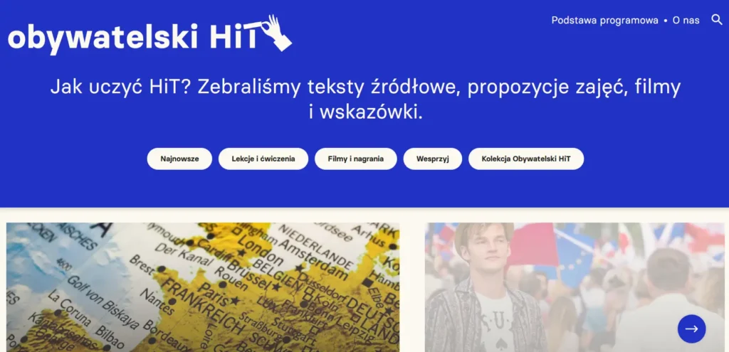 Strona www.obywatelskihit.pl została stworzona (a obecnie jest przez nas rozwijana i utrzymywana) dla Stowarzyszenia 61 jako odpowiedź na wprowadzenie w miejsce wiedzy o społeczeństwie w (zakresie podstawowym) w liceach, technikach i szkołach branżowych nowego przedmiotu – historii i teraźniejszości. Na platformie Obywatelski HiT. Znajdziecie obszerną bazę materiałów edukacyjnych. To ponad 600 pozycji: filmów, scenariuszy lekcji, propozycji ćwiczeń, tekstów źródłowych, haseł słownikowych itd. Wykorzystane technologie: WordPress.