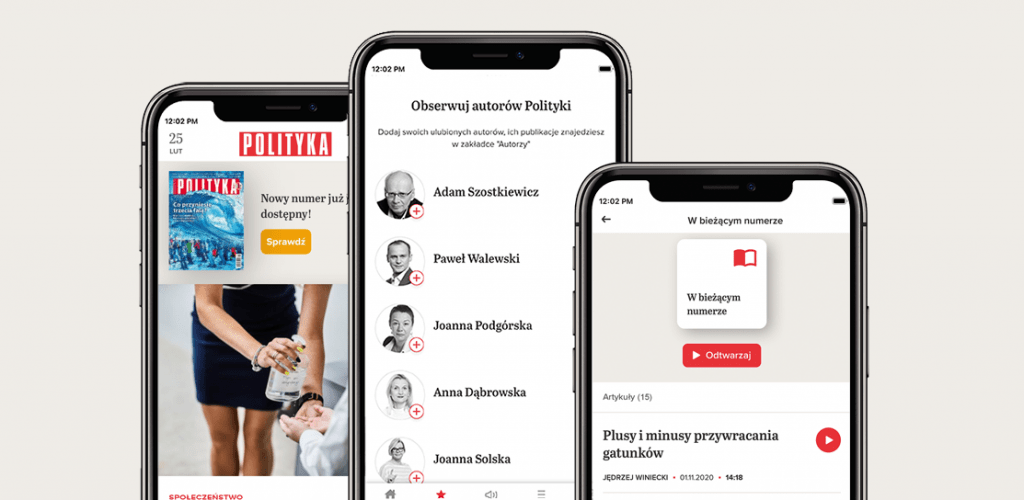 Dla Wydawnictwa Polityka stworzyliśmy aplikacje mobilne na Androida i iOSa, które cieszą się wysokimi ocenami w sklepach Google Play i App Store. Zachęcamy do pobrania! https://www.polityka.pl/aplikacja